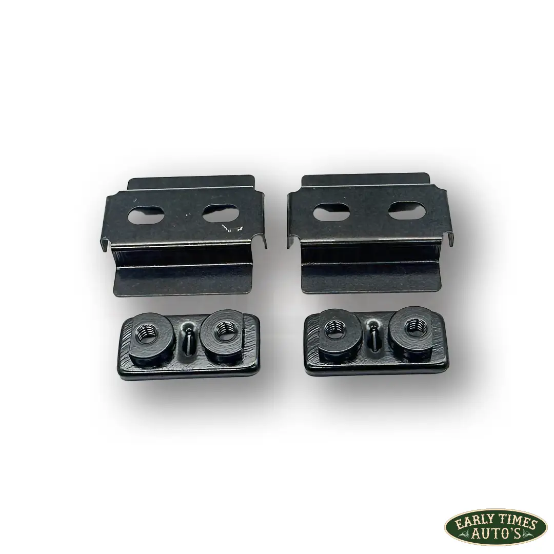 Ford 1932 door striker nut plate kit. These are to replace the striped striker plate threads and are an exact replica of the originals.