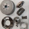 Hot rod front Buick drum cover with hidden disc brakes inside. Some of the features include, polished alloy drum covers, polished stamped stainless steel backing plates, polished stainless air intake scoops, Willwood style 4 piston alloy calipers/pads and includes hubs, bearings and seals etc. You will have to have a least a 15″ wheel. Stub axles NOT included.